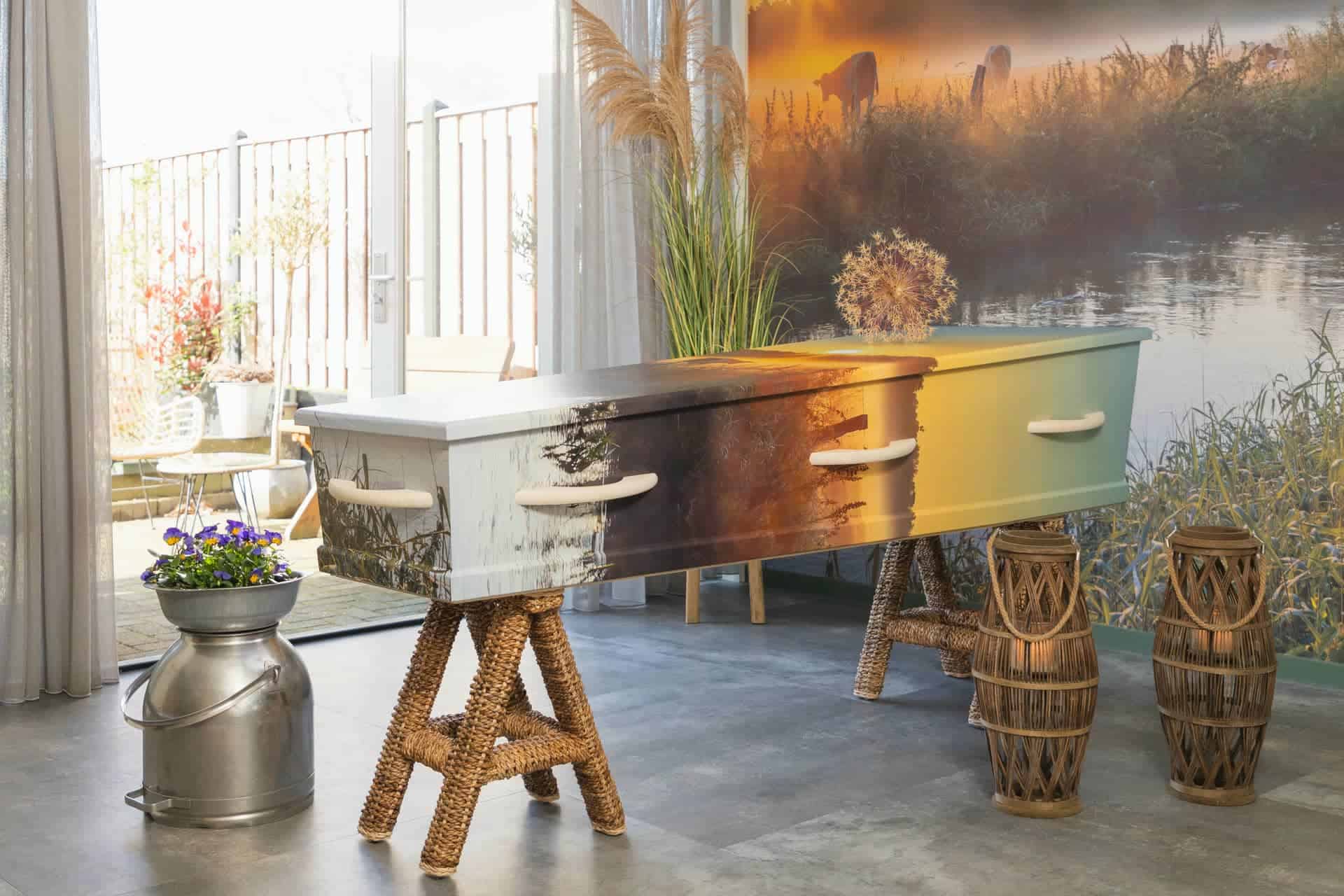 We zitten aan de koffie. Meneer ligt vlak naast ons. Het is alsof hij ieder moment kan opstaan en een kopje zou kunnen meedrinken. Ik zie aan mevrouw dat zij hetzelfde denkt. Enigszins hoopvol kijkt ze naar haar man die opgebaard ligt, goed verzorgd en met een vredige uitstraling. Hoe wrang ook, de meeste overleden personen hebben een vredige uitstraling. En dat is fijn, want vaak het helpt dierbaren er vrede mee te hebben. Geen pijn meer, of in dit geval geen lang ziekbed in het verschiet, al is het moeilijk te verkroppen voor mevrouw dat de dood van haar man zo onverwacht kwam. Geen vaarwel en geen ‘ik ga je missen’ of ‘wat hadden we het fijn samen’. Juist ook daarom is na de dood afscheid kunnen nemen zo belangrijk.